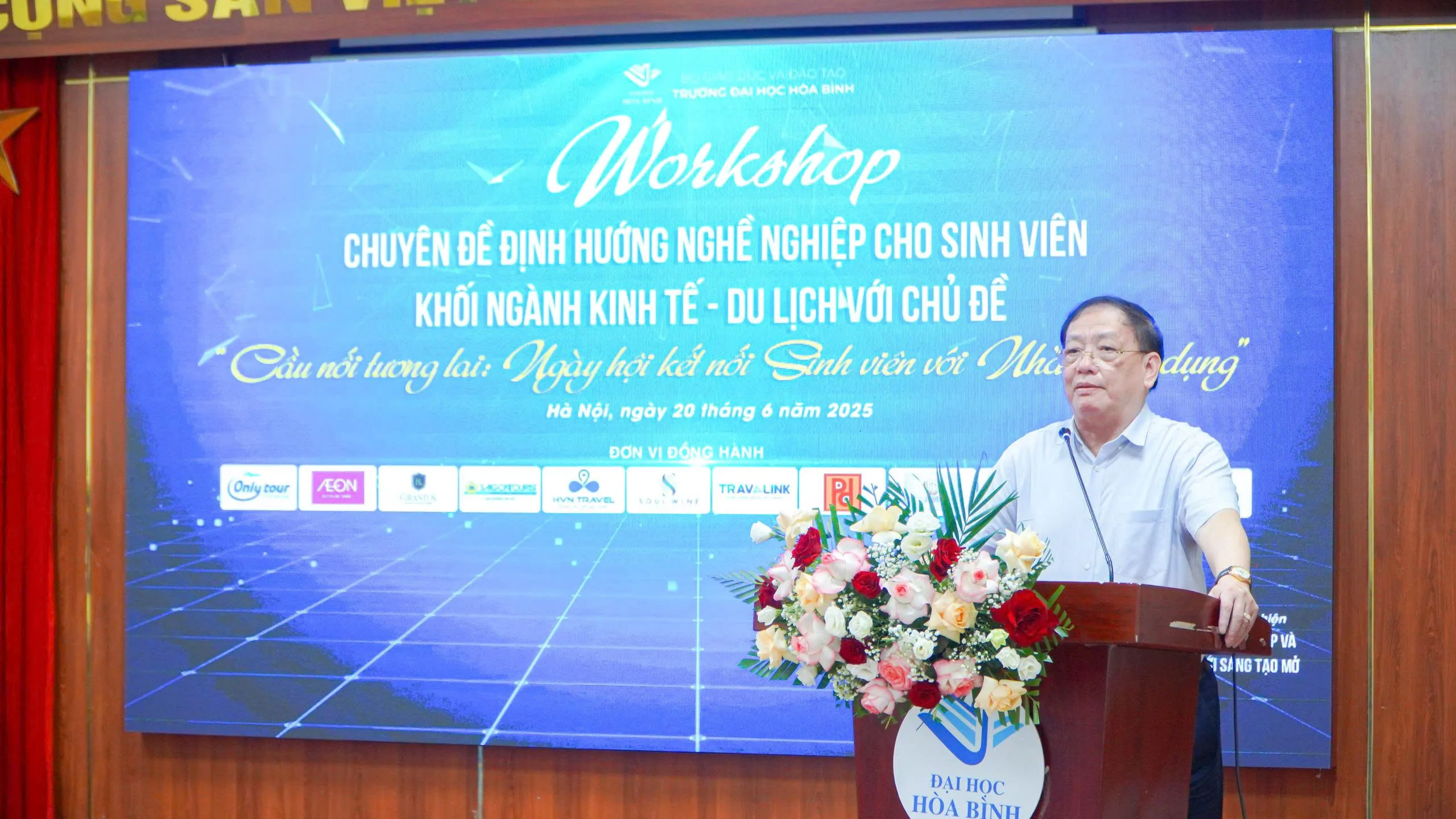 Ngày 20/6/2025, Viện Khởi nghiệp và Đổi mới sáng tạo Mở, Trường Đại học Hòa Bình đã tổ chức thành công Workshop chuyên đề Định hướng nghề nghiệp cho sinh viên khối ngành Kinh tế – Du lịch với chủ đề “Cầu nối tương lai: Ngày hội kết nối sinh viên với nhà tuyển dụng”.