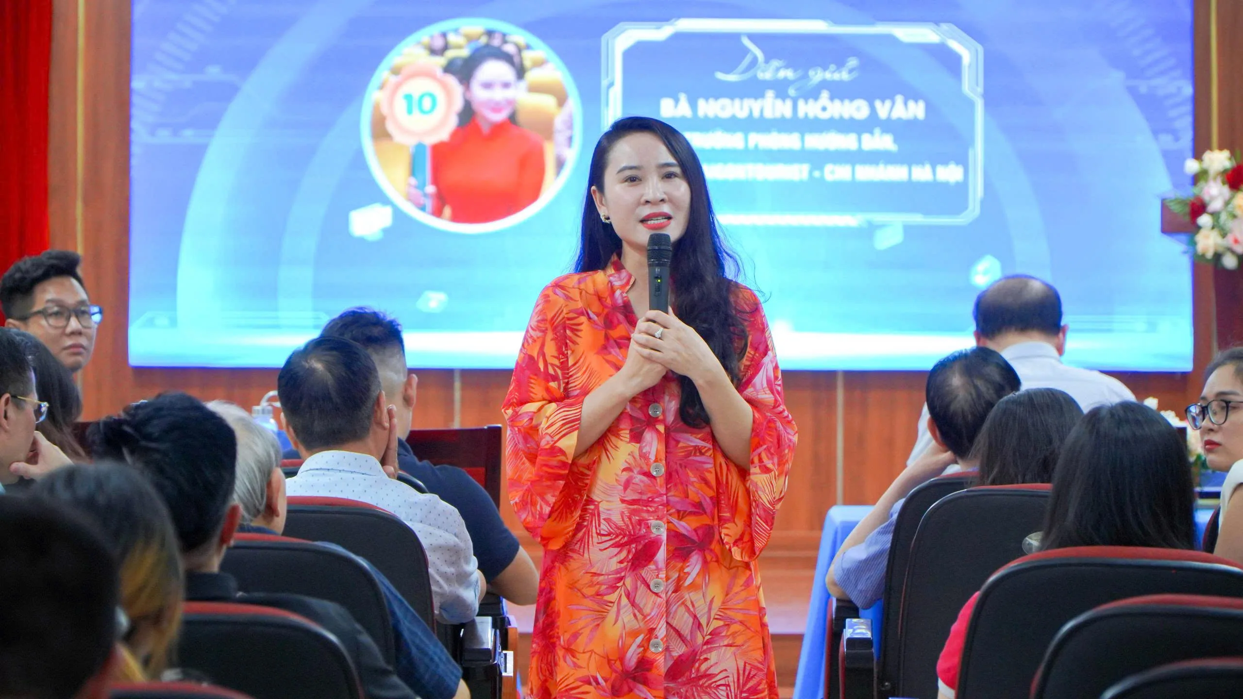 Bà Nguyễn Hồng Vân – Trưởng phòng Hướng dẫn, Lữ hành Saigontourist chi nhánh Hà Nội đã mang đến cho sinh viên bài học bổ ích về “Các kỹ năng quan trọng khi tham gia phỏng vấn tuyển dụng”, giúp sinh viên tự tin hơn khi bước vào hành trình tìm việc làm.